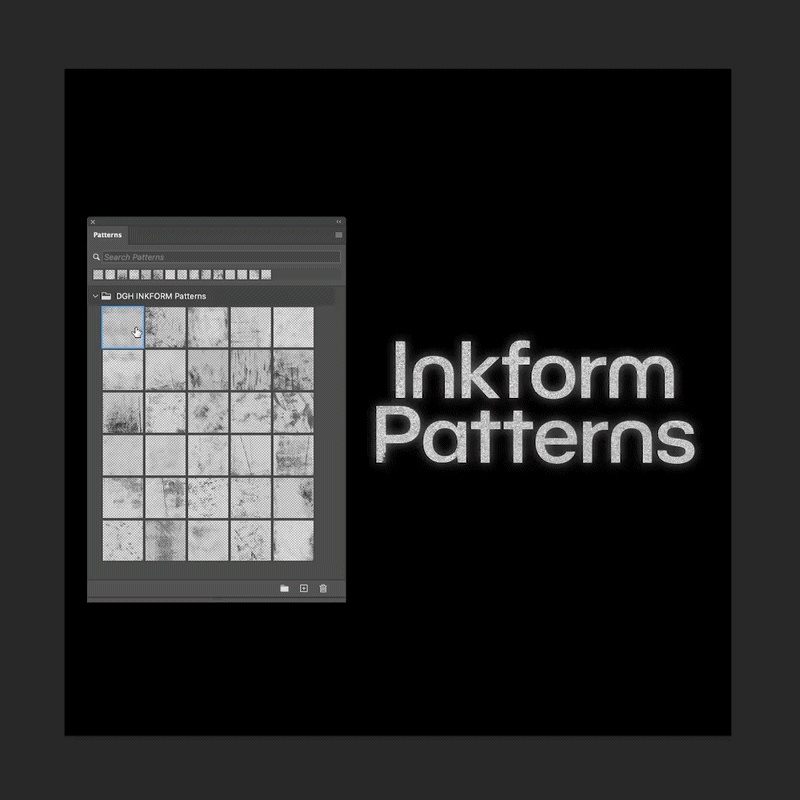 Text overlay on a black textured background reads 'Inkform Patterns'.